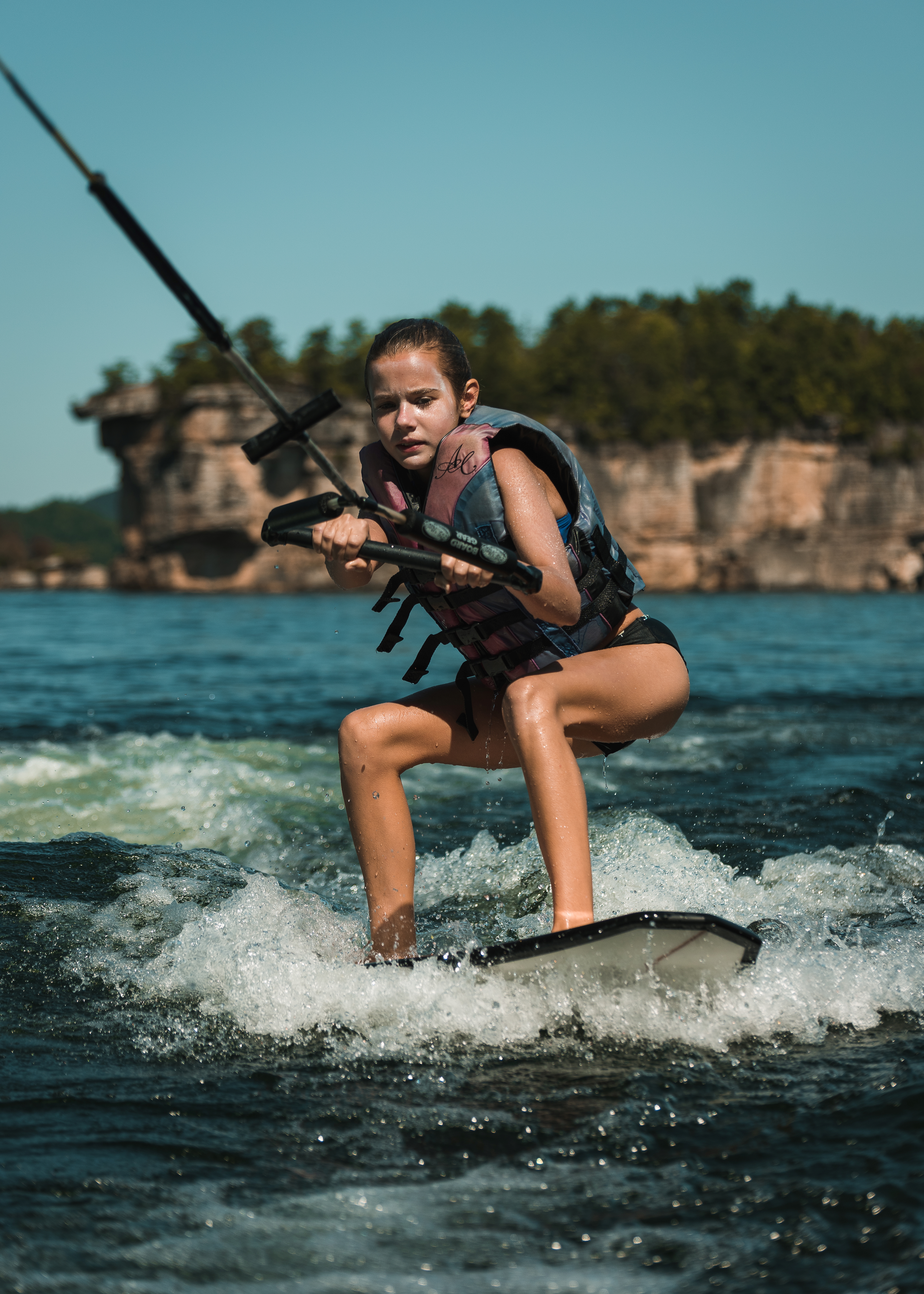 Hiking trails along the lake are chock-full of dramatic vistas, where towering, craggy bluffs slice the shoreline against the refl ected blue of forever. Find foot paths at Long Point, Battle Run, and Salmon Run.